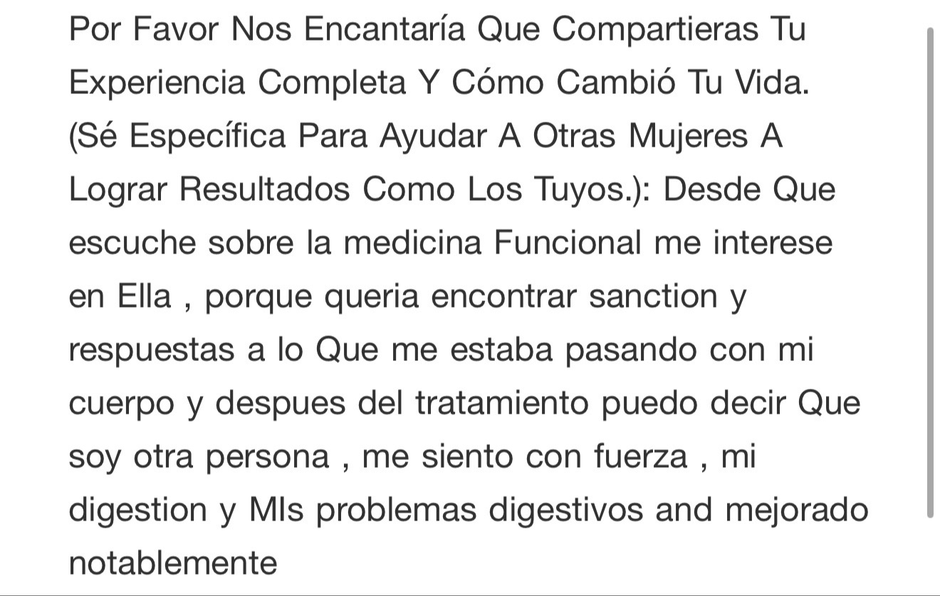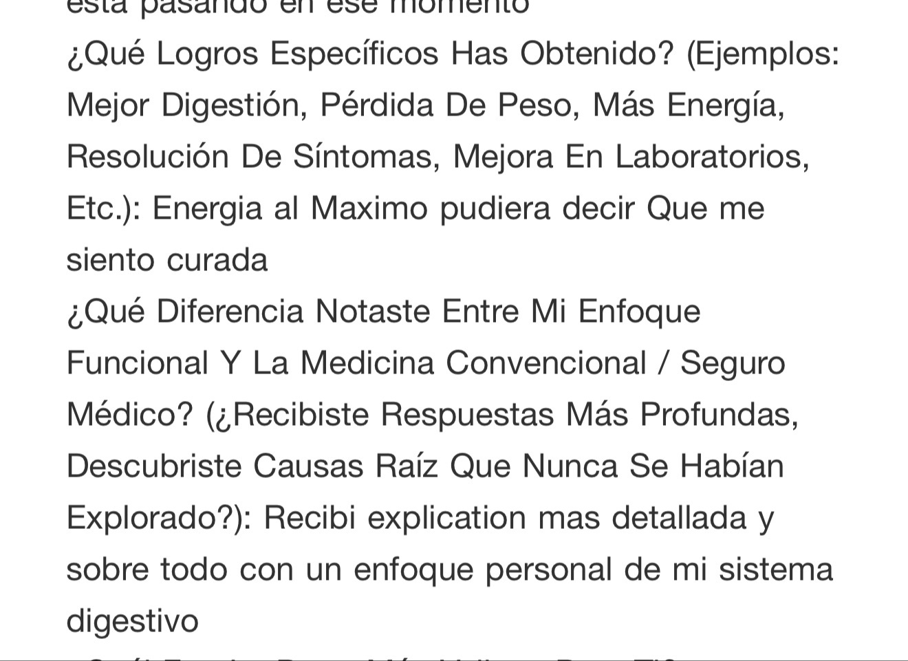 "Este modelo de medicina funcional es muy recomendable. Ayuda muchísimo y realmente te puede cambiar la vida. Hoy disfruto de una resolución real de síntomas que antes parecían imposibles"
